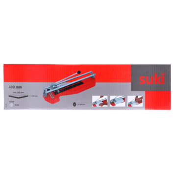 De suki-tegelsnijder klein van 400mm is ideaal gereedschap voor het snijden van geglazuurde tegels met een maximale dikte van 10mm en een snijlengte van 400mm. De tegelsnijder is voorzien van een breekbek waarmee je de tegel op de vooraf ingesneden lijn breekt. Zo snijd je met deze grote tegelsnijder kaarsrechte tegels van 400mm. Draag tijdens het werken met de 400mm-tegelsnijder suki-werkhandschoenen en een suki-veiligheidsbril ter bescherming tegen opspattende tegeldelen.