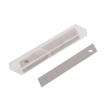 Dit suki vervangmes is geschikt voor een afbreekmes met afmeting van 18mm. Is uw zakmes bot of afgebroken? Dan vervangt u dit door deze vervangende mesjes. Let erop dat deze reservemesjes 18mm breed zijn en dus alleen afbreekmessen met dezelfde afmeting kunnen vervangen. In dit pakket van suki met vervangmessen voor een afbreekmes van 18mm zitten 10 reservemesjes. Met deze mesjes kunt u dus weer enige tijd vooruit en hoeft u geen nieuw afbreekmes aan te schaffen. Met de 10 vervangmessen voor afbreekmessen van 18mm snijdt u uiteenlopende materialen. Dus is uw afbreekmes aan vervanging toe? Vervang het mes dan door deze reservemesjes van 18mm.