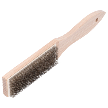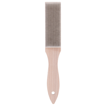 De suki-vijlenborstel gebruikt u voor het reinigen van vijlen en raspen. De vijlenborstel heeft stugge gebogen draden die de verstopte vertanding, oftewel de kap, van de vijlen reinigt. Na het reinigen kan de vijl of rasp weer optimaal worden gebruikt. In de houten greep van de vijlenborstel is een ophanggat verwerkt waarmee u de borstel voor vijlen netjes ophangt en opbergt. Naast deze vijlenborstel heeft suki ook nog andere draadborstels. Bekijk het assortiment.