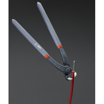 De suki-vlechttang van 225mm is door zijn kleine bek ideaal voor draadvlechtwerk. De vlechttang wordt daarom ook draadvlechttang genoemd. De 225mm lange moniertang is ook geschikt voor het knippen van middelhard draad met een dikte tot 1,6mm. De tang voor draadvlechtwerk is gemaakt van chroom-vanadiumstaal. Dankzij de geslepen kop die zorgt voor een hefboomwerking, trekt u met deze vlechttang eenvoudig nagels uit. Bovendien bieden de antisliphandvatten een goede grip op de 225mm-vlechttang.