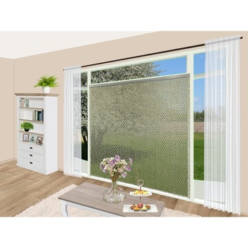 Ook jammer is dat dit dubbele vliegengordijn niet in de kleur wit (moderner) te krijgen is, zeker als de totale oppervlakte dubbel moet zijn voor de dubbele tuindeur. Met kleinkinderen die elke keer naar binnen en buiten gaan, is dit gordijn ideaal. Geen last meer van vliegen en andere insecten. Muggen kunnen en komen incidenteel naar binnen, niet noemenswaardig. Dit product bevalt prima zeker met dit super warme weer...!!