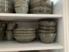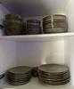 Prachtig handgemaakt en geglazuurd servies uitgevoerd in de schitterend groene teint met goud bruine accenten.