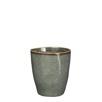 Rustiek en robuust; zo moet het servies omschreven worden. Geen wit porselein met saaie volmaakte lijnen, maar handgemaakte producten in neutrale tinten. Elk met een eigen, authentieke look die past bij puur genieten. Dat geldt ook voor deze beker zonder oor. Ideaal voor wat melk of om je handen op te warmen aan de koffie. De keramieken beker kan in de magnetron worden opgewarmd tot 180°C en na gebruik in de vaatwasser worden gezet. Door de groene kleur past de beker goed bij andere serviesstukken. Of combineer de beker met andere artikelen uit de serie en maak het servies compleet.
