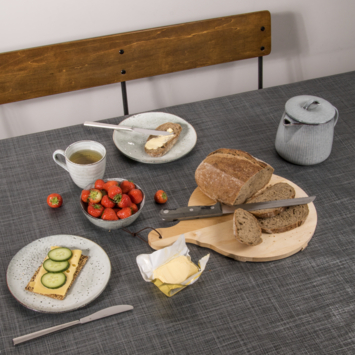 Wil je, je tafel stijlvol beschermen, maar tevens ook decoreren? Kies dan voor Tafelzeil Sharon antraciet met weefsel look & metallic accenten. Dit tafelzeil past in elk interieur en heeft een afmeting van 260 cm lang en 140 cm breed. Hierdoor is het geschikt voor tafels van 220 tot 255cm lang. Het tafelzeil beschermt je tafel tegen beschadigingen en vlekken en is eenvoudig schoon te maken met een vochtige doek. Je kunt het zowel binnen als buiten gebruiken en tevens ideaal voor gebruik tijdens kinderfeestjes of knutselprojecten. Daarnaast is de achterzijde gemaakt van fleece waardoor je het op stand 1 kunt strijken.