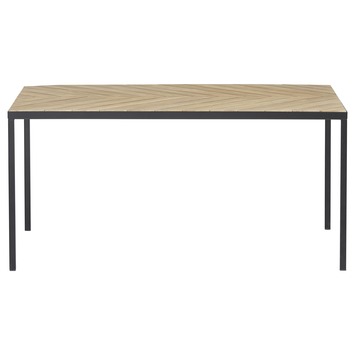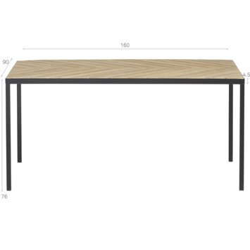 De tuintafel Jake 160 cm is een mooie eettafel met een luxe uitstraling. De tafel heeft een zwart stalen frame. Het blad is gemaakt in een visgraat motief, en is gemaakt van acaciahout. De tafel is behandeld met een olie laag. Na verloop van tijd kan er verkleuring ontstaan, met de juiste behandeling blijft het hout lang mooi van kleur. Afmetingen