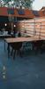 Mooie slanke tafel met zwarte poten. Visgraat gaat als ware met een pijl een kant op. Ziet er prachtig uit. Tevreden