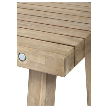 De tafel James is een mooie robuuste tafel die zich kenmerkt door de 3 grote bouten aan de lange kant van de tafel. De tafel James is gemaakt van Acacia hout. De tafel bestaat uit gelamineerde delen. Hout dat langdurig in de zon staat, kan na verloop van tijd verkleuren. Met de juiste behandeling blijft het hout lang mooi van kleur.