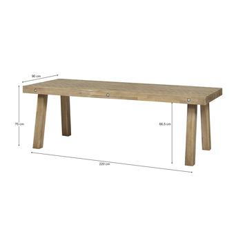 Tafel James is 220 centimeter lang, 90 centimeter breed en 75 centimeter hoog.
