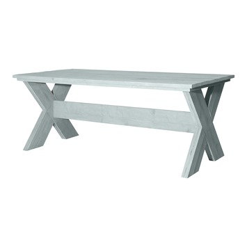 De tafel kruispoot steigerhout 200 cm is gemaakt van geruwd hout en heeft een steigerhout look. De robuuste tafel geeft je tuin direct een karakter en is 79 centimeter hoog. Deze tafel is perfect te combineren met tuinstoelen of tuinbanken en heeft aan weerzijde kruispoten. Dit geeft de dinertafel een extra sfeervolle uitstraling.