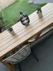 Prachtige zware tuintafel, het onderstel is gemakkelijk in elkaar te zetten, en te monteren op het dikke houten blad. Echt een aanrader!