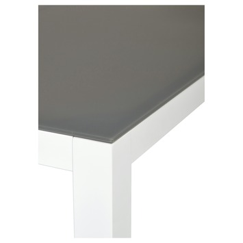 De tafel Valencia is relatief licht van gewicht met een moderne uitstraling. Het frame is gemaakt van aluminium en het blad is van glas. De kleur van de tafel is wit. Doordat de tafel niet zwaar is kun je deze makkelijk verplaatsen.