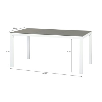 De tafel Valencia is 160 centimeter lang, 90 centimeter breed en 78 centimeter hoog.