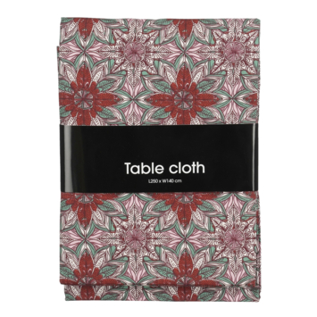 Met het tafelkleed bloem in donker rood en roze maak je van iedere maaltijd een sfeervol moment. Het bloemmotief zorgt direct voor een warme en uitnodigende uitstraling, ideaal tijdens feestdagen of voor een gezellige avond met vrienden en familie. Dankzij de royale afmeting van 250 bij 140 cm is het kleed geschikt voor een lange eettafel, waardoor je tafel meteen volledig aangekleed is. Combineer met servetten of bijpassende decoratie en creëer een prachtig geheel dat jouw interieur extra sfeer geeft.