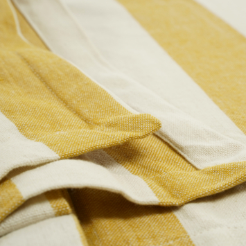 Creëer een vrolijke tafelsetting met het gestreepte tafelkleed! Het tafellaken is geel-wit gestreept en handgemaakt van katoen. Het beschermt je tafel tijdens het ontbijt, lunch of diner en zorgt voor een gezellige sfeer. Door de katoenen stof is het kleed makkelijk te reinigen. Met een lengte van 250 cm en een breedte van 140 cm heeft deze tafeldecoratie het perfecte formaat voor diverse eettafels.