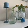 De draadloze LED-tafellamp Kaami in de kleur blauw is een perfecte manier om gezellige sfeerverlichting toe te voegen aan je tuintafel, zonder problemen met snoeren.