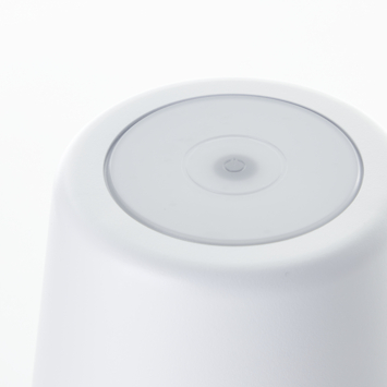 De draadloze LED-tafellamp Kaami in de kleur wit is een perfecte manier om gezellige sfeerverlichting toe te voegen aan je tuintafel, zonder problemen met snoeren.