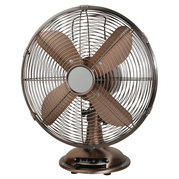 De Cobar tafelventilator metaal koper 30 CM is een uitkomst voor verkoeling op warme dagen. De tafelventilator heeft een metalen behuizing en vier metalen bladen.