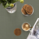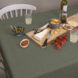 Wil je, je tafel stijlvol beschermen, maar tevens ook decoreren? Kies dan voor Tafelzeil Sharon groen met weefsel look & metallic accenten. Dit tafelzeil past in elk interieur en heeft een afmeting van 220 cm lang en 140 cm breed. Hierdoor is het geschikt voor tafels van 220 tot 255cm lang. Het tafelzeil beschermt je tafel tegen beschadigingen en vlekken en is eenvoudig schoon te maken met een vochtige doek. Je kunt het zowel binnen als buiten gebruiken en tevens ideaal voor gebruik tijdens kinderfeestjes of knutselprojecten. Daarnaast is de achterzijde gemaakt van fleece waardoor je het op stand 1 kunt strijken.