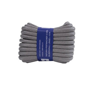 Taifun landvast lijn van Seilflechter heeft een diameter van 12mm met een lengte van 10mtr gewikkeld op een bundel. De kleur is zilver grijs. De taifun landvast lijn is dubbel gevlochten en gemaakt van hoogwaardig polyester met een hoge breeksterkte van 2500kg. De taifun landvast lijn heeft een perfecte grip, soepen en twist vrij.