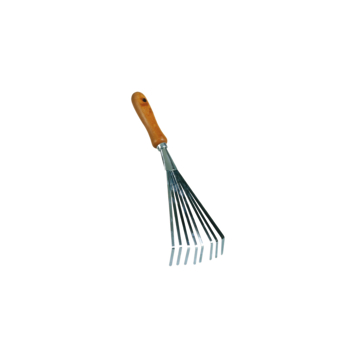 Handharkje voor het opharken van bladeren en licht tuinafval.