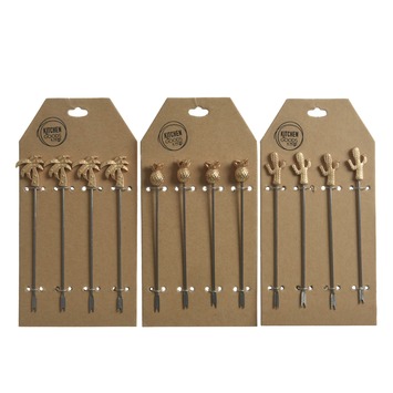 Met de tapasprikkers kan je hapjes serveren en eten zonder vieze handen te krijgen. Perfect voor een speciale aangelegenheid. De setjes bevatten 4 stuks prikkers. Er is een keuze uit 3 verschillende varianten: ananas, palmboom en cactus. De tapasprikkers zijn 12x2x2 cm.