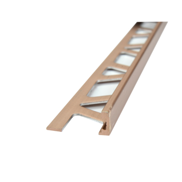 Werk dikke tegels netjes af met deze rechte tegelstrip van 12,5 mm. De koperkleurige uitvoering zorgt voor een warm, modern accent in je badkamer, keuken of toilet. Tegelranden blijven goed beschermd tegen beschadiging dankzij het stevige metalen profiel. De strip is ideaal voor uitwendige hoeken en plintafwerkingen en sluit strak aan bij hogere tegels. De lengte van 270 cm maakt het makkelijk om lange oppervlakken zonder onderbreking af te werken. Je plaatst de strip tijdens het tegelen, zonder extra gereedschap of ingewikkelde montage. Zo combineer je uitstraling met praktisch gemak, en geef je je tegelwerk direct een verzorgde, stevige afwerking.