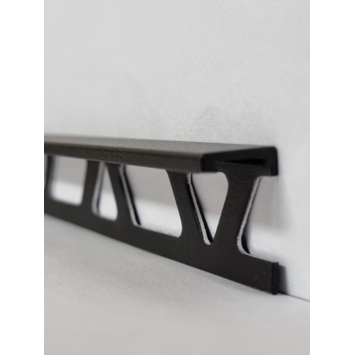 Voorkom gebroken tegelranden met dit robuuste tegelprofiel in mat zwart. Het profiel van 10 mm hoog is ontworpen voor strakke, rechte afwerking van uitwendige hoeken en plinten. Handig als je bijvoorbeeld een doucherand, hoekmuur of betegelde nis netjes wilt afronden. Het metalen profiel is niet alleen stevig, maar ook stijlvol. De matzwarte kleur zorgt voor een tijdloze look die perfect past bij moderne tegelstijlen. Dankzij de lengte van 270 cm heb je genoeg profiel om grotere oppervlakken of meerdere wanden af te werken. Je plaatst het profiel gelijktijdig met het tegelen, wat zorgt voor een stabiel en strak eindresultaat. Een slimme oplossing als je tegels mooi wilt houden, zelfs op plekken waar ze veel te verduren krijgen.
