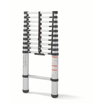 Deze telescopische ladder heeft 11 treden. Hiermee is de ingeschoven lengte slechts 102 cm en kun je de ladder dan ook altijd gemakkelijk opbergen. De uitgeschoven