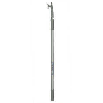 De telescopische pikhaak 1,20 - 2,10m. Deze pikhaak is gemaakt van aluminium men heeft een kunststof haak. Door het gebruik van kunststof beschadig je de lak niet. De pikhaak is uitgevoerd met grijze kunststof antislip grepen, hierdoor ligt de haak goed in de hand. De pikhaak is door middel van een simpele draaibeweging snel in lengte verstelbaar. Een pikhaak is een onmisbaar hulpstuk bij het aan- en afmeren.