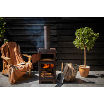 Met de terrashaard kun je zelfs op frisse avonden genieten van de warmte en het knisperende vuur. Het opvallende design van de haard verbetert niet alleen de sfeer in je tuin, maar zorgt ook nog eens voor een functioneel element. De haard is gemaakt van metaal dat gemakkelijk warmte absorbeert en uitstraalt, waardoor je nog langer van de warmte kunt genieten. Dankzij het vrijstaande ontwerp van de terrashaard is deze gemakkelijk te verplaatsen, dus je kunt altijd de perfecte plek vinden om te ontspannen. Haal deze haard in huis en geniet van de ambiance en warmte die hij brengt!