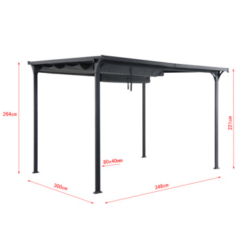 Door de afmetingen (hxbxd) 245x348x300cm heb je ook meer dan genoeg ruimte om er een loungeset of eettafel en stoelen onder te zetten. Door de stijlvolle afwerking geeft deze een chique uitstraling. Het frame is gemaakt van aluminium en het doek van polyesther met PU coating. Ook is het doek waterafstotend en heeft het 8 gaten voor waterafvoer.