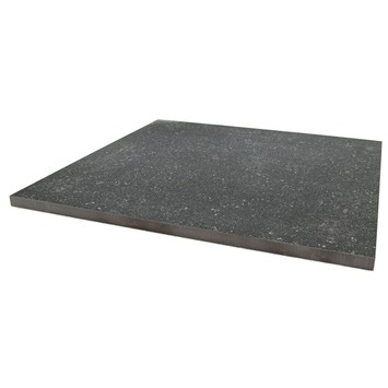 De tegel is ongeveer 2 cm dik. Dat is vrij dun en maakt het onverstandig om deze tegel af te trillen. Hoe dunner de tegel hoe groter de kans dat er tijdens het aftrillen breuken in de tegel ontstaan. Zorg dus dat de tegels van zichzelf goed liggen en zorg ook dat deze stevig vast liggen. De dunheid van de tegel maakt de tegel ook lichter dan andere tuintegels. Daardoor verschuiven deze makkelijker wanneer ze niet vast verwerkt zijn. Bij keramische tegels is het ook belangrijk dat je aan de waterafvoer denkt. Keramiek laat van zichzelf namelijk geen water door. Bij het leggen van een keramisch terras zijn de voegen dus enorm belangrijk. Voldoende voegruimte zorgt voor een gezonde afvoer van het water. Je wilt natuurlijk niet dat je na een regenbui een terras vol plassen hebt. Het voordeel van de waterdichtheid is dat vuil ook niet in de tegel trekt maar op de buitenlaag blijft liggen. Daardoor kun je deze tegels eenvoudig reinigen, maar bijtende stoffen en hogedrukreinigers zijn af te raden. Die kunnen de buitenlaag van de tegel beschadigen waardoor vuil in de toekomst wel in de tegel trekt. De tegel heeft een antislip afwerking aan de bovenzijde en is krasvast. Deze Terrastegel Keramisch Solid Stone Spots Zwart 60x60 cm - 68 Tegels / 24,48 m2 is dus zeer geschikt voor buitengebruik. Om uit te komen tijdens het leggen zul je een paar tegels waarschijnlijk moeten zagen. Het is enorm aan te raden om dat niet boven de nieuwe tegels te doen. De cementresten die vrij komen tijdens het zagen zijn namelijk vrij lastig van je tegels te krijgen. Spoel de tegels ook altijd even af voordat je de gezaagde stukken toevoegd aan jouw terras.