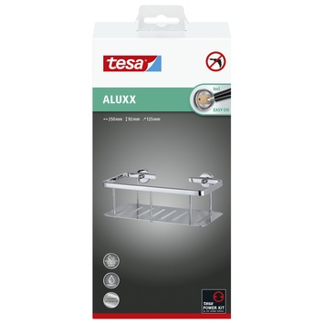 Het tesa® Aluxx doucherek is de perfecte oplossing om je douche georganiseerd en stijlvol te houden. Dit doucherek heeft een glanzend verchroomde aluminium behuizing die niet alleen een moderne uitstraling biedt, maar ook zeer roestbestendig is. Met dit handige rek heb je al je douchebenodigdheden zoals shampoo en douchegel altijd binnen handbereik. De installatie is eenvoudig en vereist geen boren, waardoor je muren en tegels intact blijven. Volg simpelweg drie stappen: plak de adapters, laat de lijm 12 uur uitharden en schroef het rek vast. Het doucherek kan eenvoudig worden verwijderd zonder lijmresten, en opnieuw bevestigen is mogelijk met een aparte adapterset. Dit doucherek is geschikt voor diverse oppervlakken zoals tegels, metaal en zelfs glas. Het is niet geschikt voor behang of stucwerk, dus houd daar rekening mee.