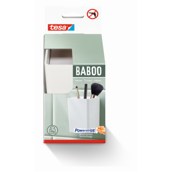 De tesa® Baboo opberger is een handige en praktische oplossing voor het organiseren van badkamerbenodigdheden. Het maakt gebruik van de tesa® Powerstrips Waterproof technologie, waardoor je geen boormachine nodig hebt voor de montage. De opberger is gemaakt van hoogwaardig mat wit kunststof en heeft een tijdloos design dat past bij elke badkamerstijl. Met de meegeleverde zelfklevende tesa® Powerstrips Waterproof strips kun je de opberger stevig aan de wand bevestigen, met een maximale draagkracht van 3 kg. En het beste is dat de strips gemakkelijk verwijderbaar zijn zonder dat er lijmresten achterblijven. De opberger heeft een afmeting van 86 mm x 110 mm x 80 mm.
