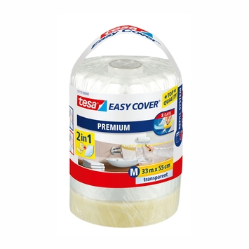 De Tesa Easy Cover M 2-in-1 afdekfolie navulling 33mx55cm is een navulling transparante afdekfolie voor in de Tesa afdekfolie dispenser. De folie beschermt tegen verfspatten bij schilderklussen. De tape aan de folie zorgt voor schone en strakke verfranden, zelfs in lichte bochten. De elektrostatische folie past zich qua vorm aan het te beschermen gebied aan en biedt daardoor een optimale bescherming.