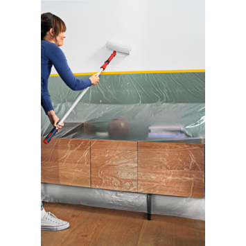 Tesa Easy Cover Perfect+ afdekfolie in dispenser 33mx55cm is ideaal voor gebruik in huis. De afdekfolie is gemaakt om meubilair, oppervlakken en andere objecten tegen verfspetters te beschermen. De dispenser heeft een praktische afroller en geïntegreerde snijder. Dat maakt dat de folie makkelijk op maat te snijden is. Een ideaal product voor renovatieprojecten thuis. De afdekfolie is bijzonder gebruiksvriendelijk: het vormt een combinatie van maskeertape en duurzame, scheurbestendige maskeerfolie.