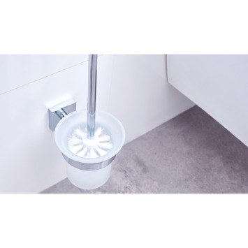 Met de tesa® Ekkro toiletborstelset geef je jouw toilet een stijlvolle upgrade. Deze toiletborstelset combineert hoogglans verchroomd metaal met gesatineerd glas, wat zorgt voor een moderne uitstraling. De wandbevestiging houdt de vloer vrij, waardoor je eenvoudig kunt schoonmaken zonder obstakels. Dankzij de innovatieve Power.Kit technologie is boren overbodig, wat schade aan muren en tegels voorkomt. Bij het verwijderen van de set blijven er geen lelijke sporen achter. De montage is een fluitje van een cent: plak de adapter op de muur, vul deze met de speciale lijm en schroef de houder vast. Na 12 uur uitharden is je set klaar voor gebruik. De set is geschikt voor diverse materialen zoals tegels, metaal en natuursteen.
