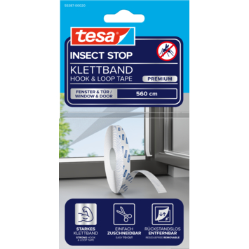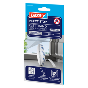 De tesa Insect Stop klittenband vervangingsrol voor raamhor Comfort 560 cm is een zelfklevende rol die je eenvoudig monteert zonder extra gereedschap. Het klittenband is geschikt voor houten, PVC en aluminium kozijnen en zorgt voor een stevige bevestiging van je Insect Stop Comfort raamhor.