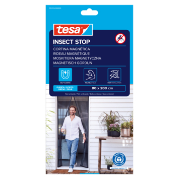 De tesa Insect Stop magnetische deurhor 80 x 200 cm antraciet is een zelfsluitend magneetgordijn voor terras- en balkondeuren dat insecten buiten houdt. Het gordijn bevat 30 ingenaaide magneten die het automatisch openen en sluiten zodra je erdoor loopt, zonder dat je je handen hoeft te gebruiken. Dit is handig voor huishoudens met kinderen of huisdieren.