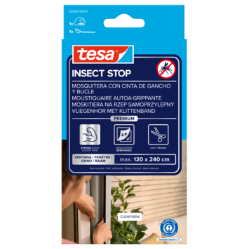 tesa® Insect Stop COMFORT Klittenband voor ramen biedt effectieve bescherming tegen insecten met klittenband waarmee je je ramen open kunt houden zonder dat insecten binnen kunnen komen. Het is verkrijgbaar in twee kleuren en twee maten, geschikt voor de meeste kozijnen. Dankzij het easy-on- en easy-off-systeem is het snel en eenvoudig te plaatsen en verwijderen. Gebruik de meegeleverde klittenbandtape om het op het raamkozijn te plakken en de druktool om het gaas er stevig tegenaan te drukken. Om het gaas weer te verwijderen, trek je het er gewoon vanaf.