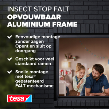 De tesa Insect Stop telescopisch horkader Falt 80/140x80/140 cm antraciet is een inzethor voor ramen die je zonder zagen of boren plaatst. Dit telescopische aluminium frame is geschikt voor ramen van 80 x 80 cm tot 140 x 140 cm. Je stelt het frame eenvoudig in op de juiste maat, zowel in de breedte als in de hoogte.
