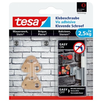 Tesa Klevende Schroef Driehoekig voor Baksteen & Natuursteen voor betrouwbare hechting op ruwe en harde oppervlakken zoals buitengevels met een draagkracht tot 2,5 kg per schroef. Gebruik meerdere schroeven voor zwaardere voorwerpen. Ze zijn zodanig gevormd dat ze onopvallend achter allerlei veelvoorkomende voorwerpen passen met schroefgaten in de hoeken of heel kleine achterzijden zoals buitenverlichtingsarmaturen, schappen en plantenbakken. De Klevende Schroeven zijn supersimpel in het gebruik en er is geen gereedschap nodig. Alles wat je nodig hebt, zit in de verpakking.