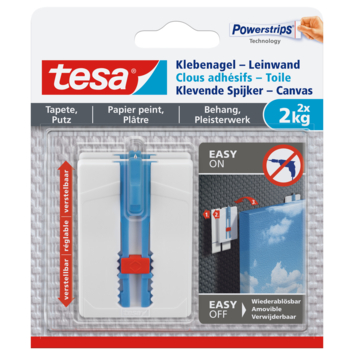 Tesa klevende spijker canvas voor behang en pleisterwerk verstelbaar wit 2 kg 2 stuks