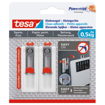 Tesa klevende spijker kleine apparaten voor behang en pleisterwerk verstelbaar wit 0,5 kg 2 stuks