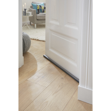 De Tesa Moll isolatierol 25x950 mm dubbel antra schuif je onder je binnendeur en klaar. De rol is zelfklemmend, dat betekent dat hij zich vastzet zonder boren of schroeven. Je beschadigt de deur dus niet. Na de winter haal je hem er net zo makkelijk weer af, zonder plakresten of gaten. De tochtstopper is bedoeld voor deuren binnen en blijft netjes zitten tijdens het openen en sluiten, zodat je er geen omkijken naar hebt.