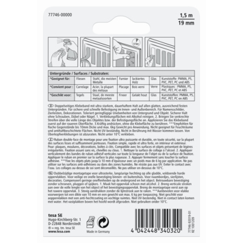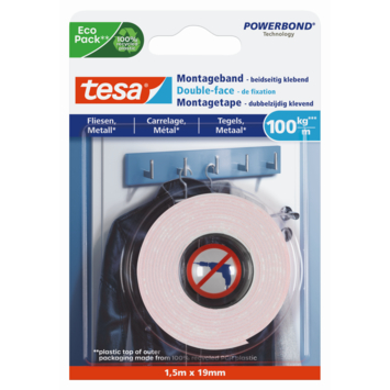 Tesa Montagetape voor Tegels & Metaal 100 kg/m is onze sterkste montagetape en is speciaal ontwikkeld voor een permanente en degelijke hechting op harde en gladde oppervlakken zoals tegels, metaal en de meeste kunststof oppervlakken. De tape compenseert zelfs kleine onregelmatigheden. De tape is ideaal voor permanente montage van voorwerpen tot 10 mm dikte en gewichten tot 6 kg en toepassing zonder spijkers of schroeven. In optimale omstandigheden heeft deze tape een draagkracht van maximaal 10 kg per 10 cm tape. Het is eenvoudig en handig in het gebruik en zorgt voor betrouwbare hechting.