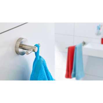 De tesa® Moon badjashaak combineert een strak design met praktisch gebruik. De RVS afwerking met anti-vingerafdruklaag houdt de haak mooi schoon, ook bij dagelijks gebruik. Je bevestigt hem zonder te boren: plak de adapter op de muur, vul hem met de tesa® Power.Kit-lijm en laat dit 12 uur uitharden. Daarna schroef je de haak eenvoudig vast. Alles wat je nodig hebt zit in de verpakking. De haak is stevig en houdt je handdoek of badjas netjes op z’n plek. Je gebruikt hem op ondergronden zoals tegels, glas, hout, beton, metaal en natuursteen. Niet geschikt voor behang of stucwerk. Wil je de haak later verplaatsen? Dan doe je dat zonder schade of lijmresten.