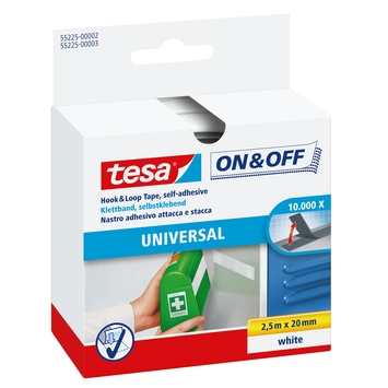 Tesa On&Off klittenband wit 20 mm / 2,5 m
