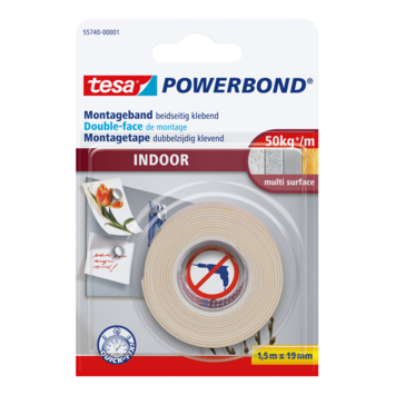 Tesa Powerbond Indoor montagetape wit 19 mm x 1,5 m