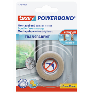 Tesa Powerbond montagetape transparant 1,5 m x 19 mm